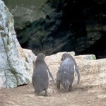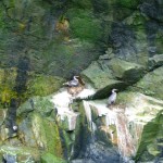 An den steilen Hängen der Insel sehen wir an einigen Stellen schmale, weit nach oben führende Trampelpfade. Die kleinen Pinguine legen diese an, um ihre Nester vor den Seeottern zu schützen, die nichts lieber verspeisen als ein frisches Pinguinei.