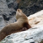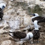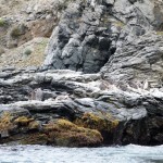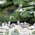 In den Felsnischen sind viele Seevögel gerade mit dem Nestbau beschäftigt. Wir sehen verschiedene Arten von Möwen, Tölpel, Pelikane und Kormorane, und bewundern ihre Flugakrobatik. Die Landung ist vielleicht nicht unbedingt die Stärke der Pelikane und manch einer kippt dabei auch schon mal auf die Nase und muß wild mit den Schwingen schlagend korrigieren, aber dafür sind sie mit Abstand die besten Gleiter. Die tiefschwarzen Kormorane kreisen in zehn bis 15 Metern über dem Meer und halten Ausschau nach kleinen Fischen. Erspähen sie ihre Beute aus der Luft, kippen sie über eine Flügelseite weg, bringen sich mit wenigen Flügelschlägen in die richtige Position, schießen dann wie ein Pfeil aufs Meer zu und klappen auf den letzten Metern die Flügel ein, um blitzschnell und in exakt dem richtigen Winkel einzutauchen.