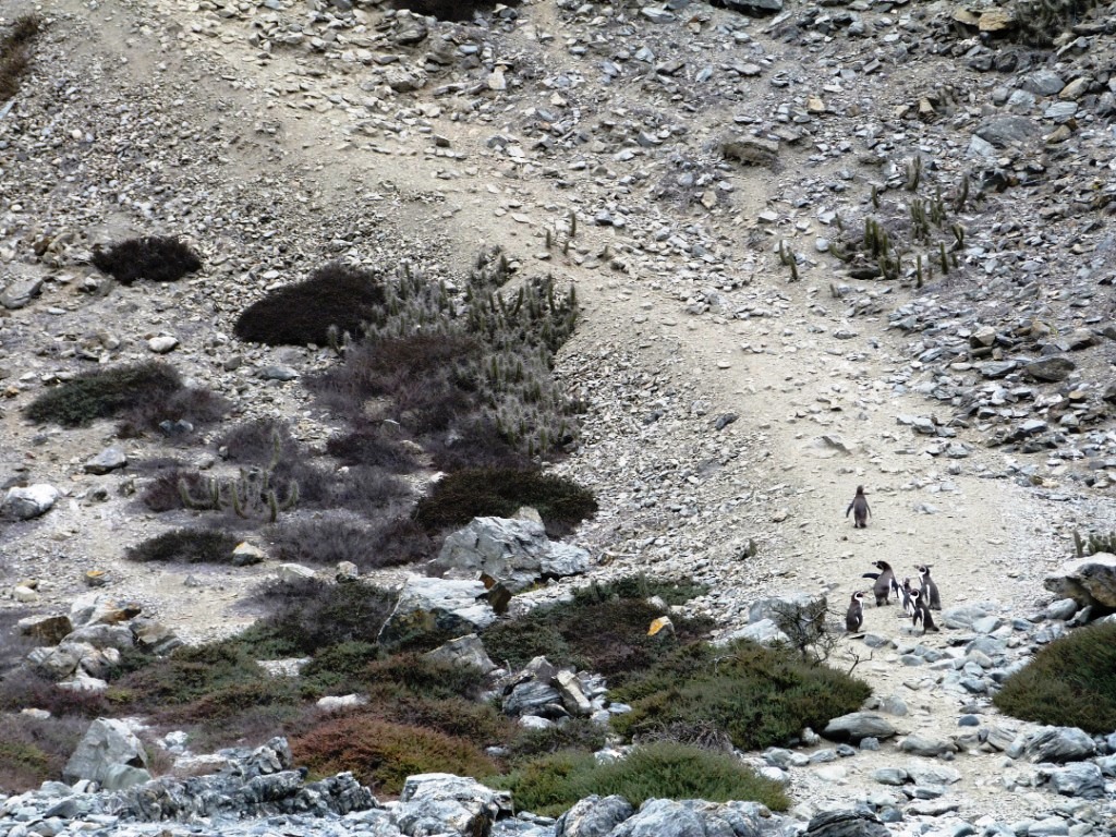 Im Boot geht es die felsige und steile Küste der Isla Choros entlang und wir können die dort lebenden Tiere aus nächster Nähe beobachten. Die Insel darf nicht betreten werden, sondern bleibt ausschließlich den Tieren vorbehalten, die dort auch ihre Babystuben haben. Besonders die nur einen halben Meter großen Humboldt-Pinguine sind putzig anzuschauen. So watschelig und unbeholfen sie an Land erscheinen so behände und rasend schnell sind sie unter Wasser.