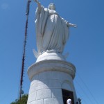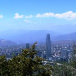 Die Freude ist groß, als DerNachbar endlich in den Massen aus Passagieren, wartenden Angehörigen, Freunden und Taxifahrern mit Namensschildern auftaucht. Nach einem kurzen Stopp im zentral gelegenen Hotel fahren wir gemeinsam ins Stadtviertel Bellavista und mit der Funicular, der Seilbahn, hoch auf den Cerro Cristobal, den Stadtpark von Santiago mit einer phantastischen Aussicht auf „Sanhattan“ mit seinen spiegelnden Glaspalästen. Der Gran Torre Santiago ist komplett verglast und mit 303 Metern das höchste Gebäude Lateinamerikas. Noch ist der Sommer mit seiner brütenden Hitze nicht da und der Dunstschleier über der Stadt ist kaum wahrnehmbar.