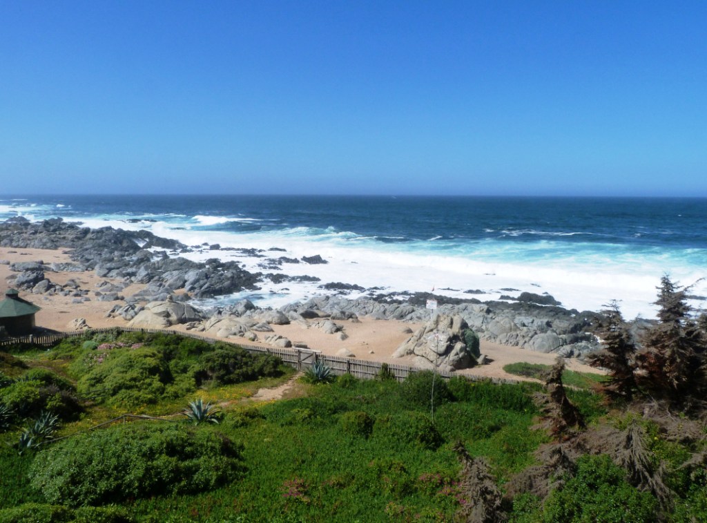 Wir verlassen die Großstadt nach Westen und stoßen bei Algarrobo wieder an die Küste. Nördlich des Ortes erstreckt sich mit San Alfonso del Mar ein Hotelkomplex mit Guiness-Rekord: Eine künstlich angelegte Meerwasser-Lagune stellt mit 1.013 Metern Länge das längste Schwimmbad der Welt. Auch sonst ist die Gegend unübersehbar touristisch geprägt: