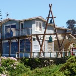 Wir fahren weiter nach Isla Negra, rund 80 km südlich von Valparaiso gelegen. Isla Negra ist nicht, wie der Name vermuten lässt, eine schwarze Insel vor der chilenischen Küste, sondern eines der drei Häuser des Schriftstellers Pablo Neruda, sein Lieblingshaus und zugleich seine Grabstätte. Auf die Felsen oberhalb des Pazifiks gebaut spiegelt es die überbordende Phantasie des Dichters und seine lebenslange Leidenschaft für das Meer wieder. Er kaufte das Grundstück mit einem kleinen Steinhäuschen 1938 einem spanischen Seemann ab und nahm im Laufe der Jahre zusammen mit seinen Freunden, den Architekten German Rodriguez Arias und Sergio Soza, zahlreiche Änderungen und Erweiterungen vor. Überwiegend wurden dabei Holz und Naturstein aus der Gegend verwendet. Mit der Zeit entstand ein organisch anmutendes Gebilde, teils Wohnhaus, teils Arbeitsstätte, teils Museum.