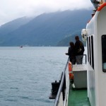 Unsere Fähre, die Don Baldo, soll um 3.00 Uhr – ja, mitten in der Nacht – in Quellón ablegen. So ungefähr jedenfalls, festlegen möchte sich niemand so genau. Wir werden aufgefordert, uns wegen der Fahrzeugverladung bereits um Mitternacht im Hafen einzufinden. Hinweisschilder, wo die Don Baldo anlegen wird, gibt es keine in der Stadt, daher fragen wir uns durch. Wir sind frühzeitig an der Anlegestelle bei den Fischverarbeitungsbetrieben und Lachsfarmen im Norden der Stadt, stellen den Wecker und legen uns für kurze Zeit hin. Aufgrund der langen Verladezeit, die uns angegeben wurde, erwarten wir ein relativ großes Schiff, aber als die Don Baldo einläuft ist sie nicht wirklich groß. Auf dem Steg reiben wir uns noch den Schlaf aus den Augen, als wir ein deutsches Paar aus Jena wiedersehen, die wir bereits in Cusco auf der Quinta Lala kurz kennengelernt hatten. Ihre Reiseroute war seitdem ganz anders als unsere, aber hier kreuzen sich überraschend unsere Wege.