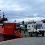 Die Bugklappe der Don Baldo wird – die Estonia-Katastrophe scheint hier unbekannt zu sein – schon weit vor der Anlegestelle vollständig heruntergefahren, dann legt das Schiff in schrägem Winkel an der Betonrampe an und das Verladen beginnt. Insgesamt werden acht große Sattelschlepper mit jeweils rund 50.000 Litern Benzin und Diesel rückwärts auf die Fähre gefahren, wobei die Fahrer fast im rechten Winkel um die Ecke rangieren müssen. Alle Achtung, das ist eine Meisterleistung. Anschließend werden Unimoppel und der einzige weitere PKW verfrachtet, dann ist der Schiffsbauch voll und die nächtliche Fahrt zum Festland beginnt. Ein etwas seltsames Gefühl, mit fast einer halben Million Liter hochexplosiver Fracht unterwegs zu sein, aber das Meer ist spiegelglatt, die Überfahrt ruhig und wir können in unseren Sesseln dösen, bis wir frühmorgens im verschlafenen Chaitén, unserem Einstieg in die Carretera Austral, ankommen.