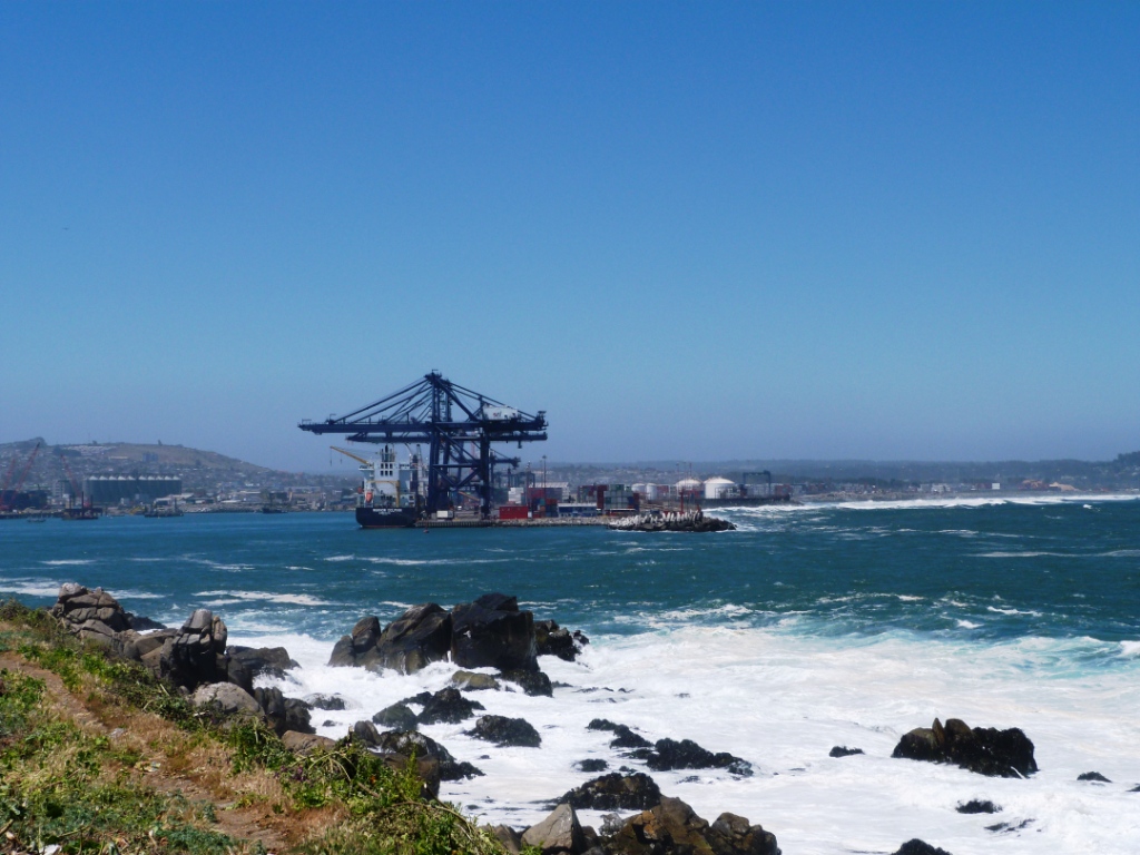 Von Isla Negra geht es die Küste entlang weiter, den größten Teil über asphaltierte Wege, manchmal über Piste. San Antonio mit seinen großen Verladekränen hat in Bezug auf den Warenumschlag Valparaiso den Rang angelaufen und ist inzwischen der größte Hafen Chiles.