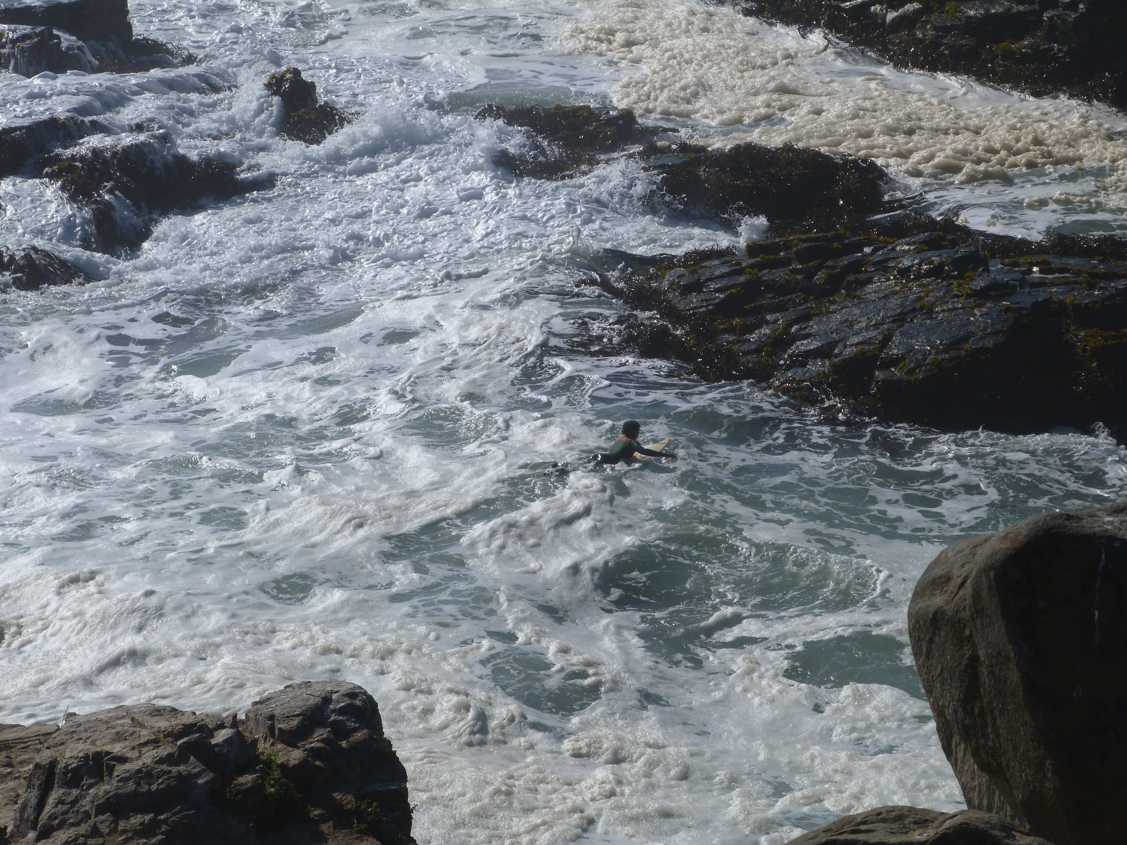 Mit Pichilemu erreichen wir das einstige Seebad des chilenischen Landadels. Der palmenbestandene Parque Agustin Ross Edwards und das Spielcasino zeugen noch von der aristokratischen Vergangenheit des Ortes Ende des 19ten Jahrhundert. Heute steht jedoch ein anderer Ortsteil im Zentrum der nationalen und internationalen Aufmerksamkeit. Punta de Lobos ist eine kakteenbewachsene Felsnase, die wenige Kilometer südlich des Küstenstädtchens ins Meer ragt und ein Treffpunkt der Surfelite ist. Die Pazifikwellen hier gelten als die besten Südamerikas. Da Punta de Lobos fast auf dem Weg liegt fahren wir am späten Nachmittag auf einen Sprung zum Zuschauen hin. Nachdem sich die surfistas in ihren dicken Neoprenanzügen mit ihren boards durch weißschäumendes Wasser zunächst bis zu einer scharfkantigen Felsinsel durchgekämpft haben stürzen sie sich in die bis zu zehn Meter hohen Röhrenwellen. Für die Könner unter ihnen lohnen sich die Mühe und das Risiko, denn die Wellen sind lang, bilden schöne Tunnel und legen einen weiten Weg zurück, bis sie am breiten Strand mit Getöse brechen. Viele Ausländer haben sich aufgrund der buena onda, der guten Welle, und der sorglosen Stimmung hier im Surf-Mekka Chiles inzwischen fest oder mit einem zweiten Wohnsitz niedergelassen.
