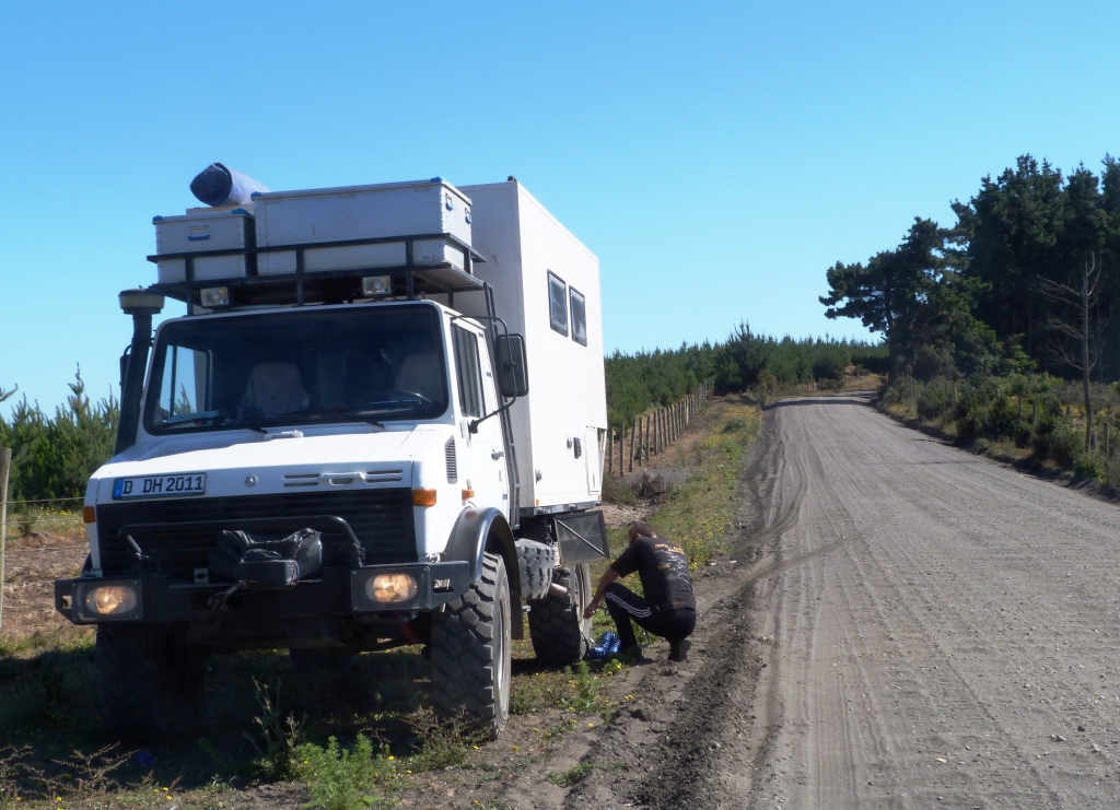 Neben dem enormen Dieselverbrauch ist die Dezibelzahl des Unimogs der einzige weitere Kritikpunkt, den man eventuell haben könnte. Hier im einsamen stillen Patagonien rechnen wir fest damit, irgendwann von Mutter Natur wegen Ruhestörung eine Strafanzeige zu erhalten. Dann kommt noch das mysteriöse Sirenenphänomen dazu: In Städten und auf Straßen mit vielen parkenden Autos auf den Seitenstreifen löst das Brummen des Mogs leider sehr häufig die Alarmanlagen aus, die der Reihe nach losgehen, wenn wir vorbei fahren. Sehr seltsam…Wie dem auch sein, wir können es nicht ändern und irgendwie ist es ja auch lustig.