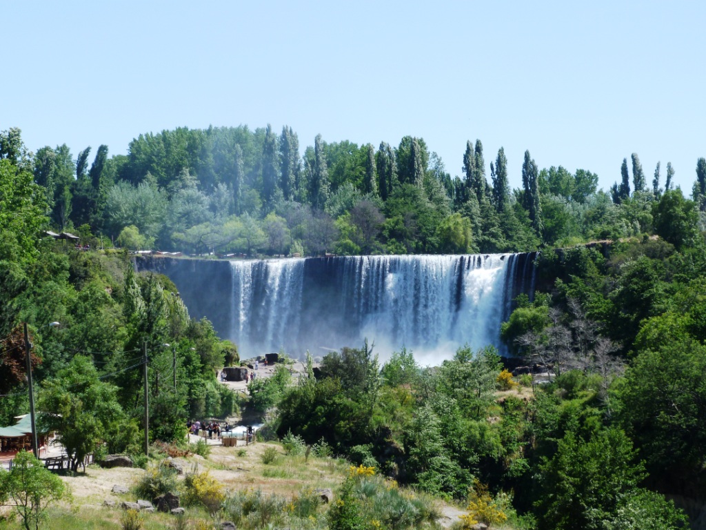 Siebzig Kilometer südlich von Chillán unternehmen wir einen kleinen Abstecher zum Salto del Laja, den größten Wasserfällen Chiles. Kein Vergleich mit Iguacu, aber die Wasserwand, die sich fünfzig Meter tief in eine enge Schlucht stürzt, ist immerhin einhundert Meter breit und durchaus beeindruckend.