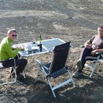 DerNachbar und ich sind ein wenig neidisch…Den Abend und die Nacht verbringen wir auf einem Lavafeld unterhalb des Gipfels. Oliver darf Erdbeeren schnippeln, Hugo muß den Cabernet Sauvignon öffnen… Mit Bioschaffell, Fleecedecke und Daunenschlafsack bewaffnet zieht DerNachbar später in unseren Markisenluxusanbau um.