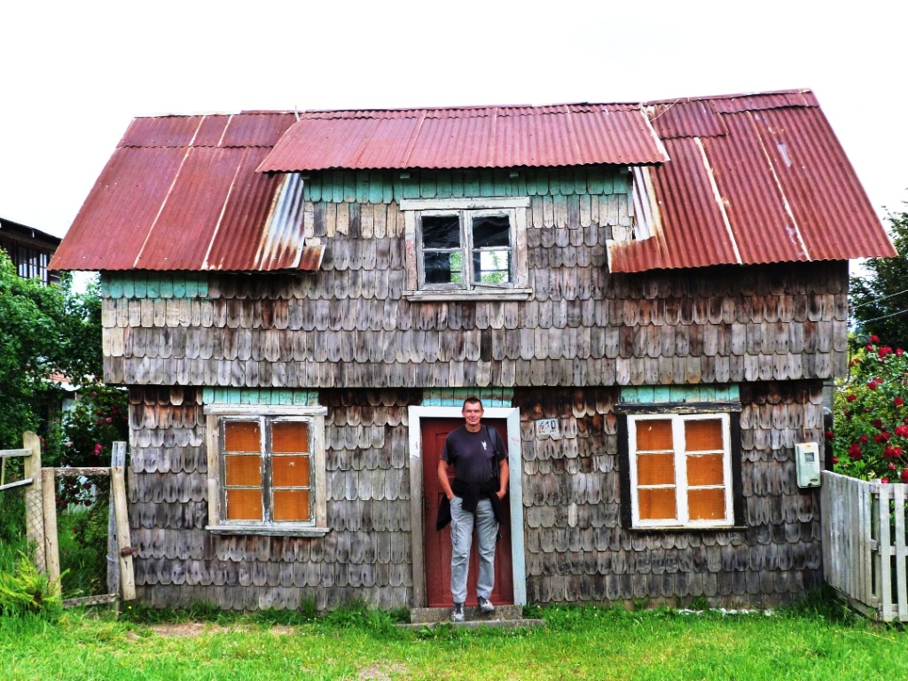 Was wir von Chiloé sehen, gefällt uns sehr gut. Die hügelige Landschaft ist in allen Grüntönen schattiert und die Wiesen sind mit Butterblumen, Vergißmeinicht und Gänseblümchen übersät. Die Menschen leben auf kleinen, von Weidezäunen aus Holz umgebenen Gehöften und in ihren Gärten setzen üppig wachsende blaue Hortensien, pinkfarbene Rhododendren und Stockrosen fröhliche Farbtupfer. Mehrfamilienhäuser oder zur Miete wohnen wie in Europa sind hier unbekannt, fast jeder hat hier uralten, von Generation zu Generation vererbten Grundbesitz. Im Gegensatz zu den Tieren im wüstenhaften Norden des Landes sind die Rinder, Pferde und Schafe kugelrund, haben glänzendes Fell und schauen zufrieden. Kälberwiesen wie in Deutschland gibt es nicht; hier bleiben die Familien lange zusammen und die Milch bekommt das Kalb und nicht Aldi. Überall auf der Insel stehen winzige, mit Alerce-Schindeln verkleidete Kirchen. Insgesamt gibt es auf Chiloé 150 dieser Kirchen, von denen sechzehn in die Liste des UNESCO-Weltkulturerbes aufgenommen wurden. Die Außenvertäfelung mit den rund 90 Zentimeter langen Schindeln, von denen nur ein Drittel sichtbar ist, ist vielfältig. Insgesamt gibt es zehn verschiedene Stile von tejuelas.