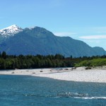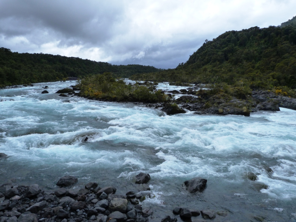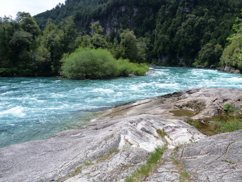 Die rund achtzig Kilometer lange Strecke windet sich als Piste durch ein langes Tal und führt uns am stillen Gletschersee Lago Yelcho vorbei, der sich zu Füßen einer dicht bewaldeten Bergkette über 35 km erstreckt, und dann entlang des malerischen, blau-grün schimmernden Rio Futaleufú, der mit seiner Vielzahl an wild schäumenden Stromschnellen ein Rafting-Paradies ist.