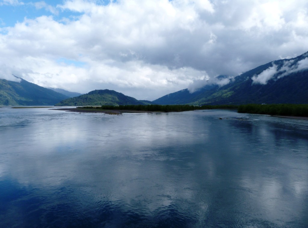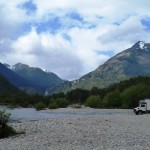 Der Verwalter des privaten Naturreservates kann uns leider auch keine Querfeldein-Abkürzung vom Valle California nach La Junta nennen. In der Region ist zwar die Rede von einer Straße durch den Urwald, die im Rahmen eines Förderprogrammes gebaut werden soll, aber wann und wie der aktuelle Stand des Vorhabens ist weiß hier niemand. Solange die Straße nicht existiert interessiert sie hier auch niemanden. Wenn die Strecke dann irgendwann befahrbar ist wird die Nachricht allerdings wie die olympische Fackel in Windeseile von Dorf zu Dorf wandern. Wir fahren also ein Stück zurück, biegen wieder auf die Carretera Austral nach Süden ab und beschließen in La Junta, die rund siebzig Kilometer lange Schotterpiste bis ans Meer nach Puerto Raul Marin Balmaceda zu fahren. Die Fahrt wird uns durch das lange Tal des Rio Palena führen und da es schon spät ist schlagen wir unser Nachtlager auf einer idyllisch gelegenen Wiese am Flußufer auf. Niemand ist zu sehen oder zu hören und die Nacht ist still bis auf das gleichmäßige Gurgeln des Wassers im Hintergrund.