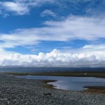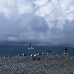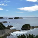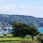 Die Farbe des Himmels ändert sich alle paar Minuten. Das strahlende Blau, gerade noch vom Wind völlig wolkenfrei gefegt, wird urplötzlich von großen, tief über den Hügeln hängenden, Regenwolken verdunkelt. Sicherheitshalber kramen wir – erstmals auf dieser Reise – unsere Regenjacken raus. Das kann nur bedeuten, daß wir auf Chiloé angekommen sind, der Insel, von der Charles Darwin in seiner Beagle-Dokumentation behauptete, ihr Klima sei „schaudervoll“. Ganz so schlimm ist es nicht, aber mit Regen müssen wir auf unserer weiteren Reise durch Patagonien jetzt wohl häufiger rechnen.