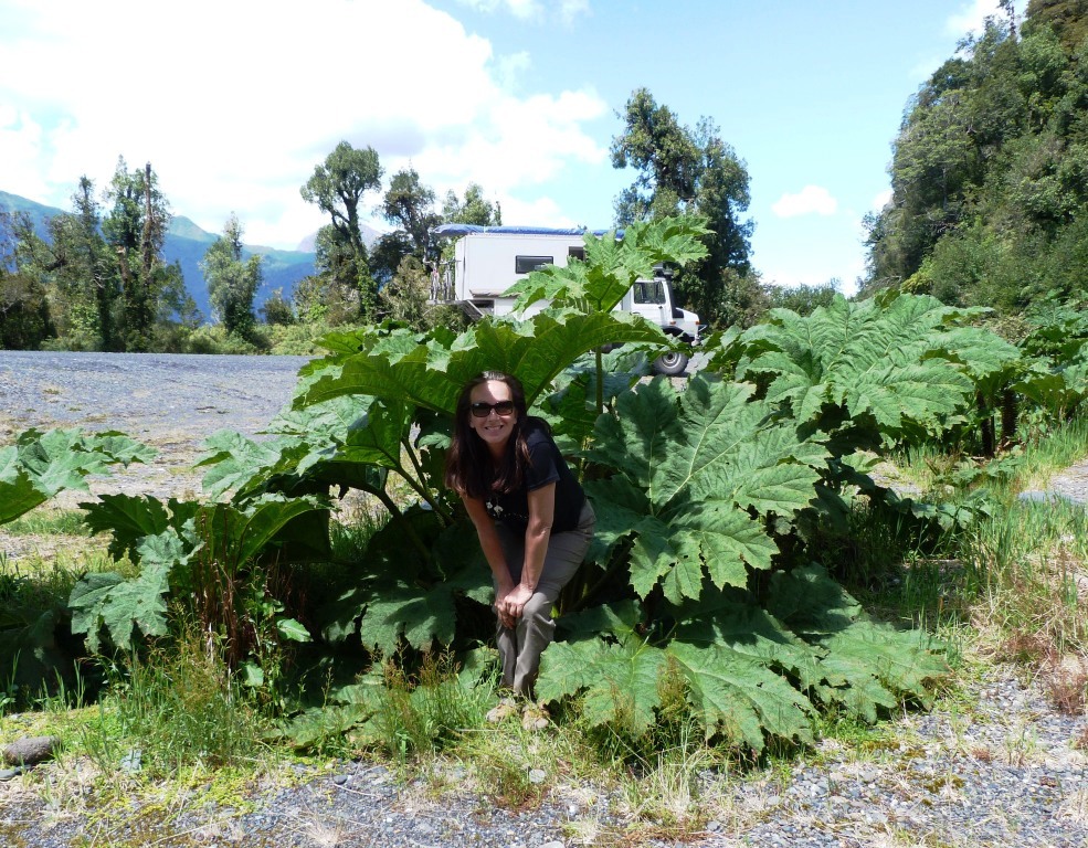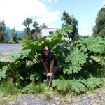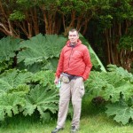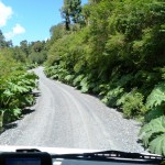 Wir fahren auf der Carretera Austral, die den Park durchschneidet. Kaum ein Fahrzeug begegnet uns. Die einsame Schotterpiste ist von dichtem Regenwald umgeben und Riesefarne sowie die großblättrigen Nalca-Pflanzen, eine Rhabarberart, säumen den Weg und reichen vielerorts bis weit in die Piste hinein. Ab und an fällt etwas Regen und die Wolkenfetzen hängen tief in den grünen Bergen; wenn dann die Sonne wieder durchkommt dampft der Urwald und man kann schöne Regenbogen entdecken.