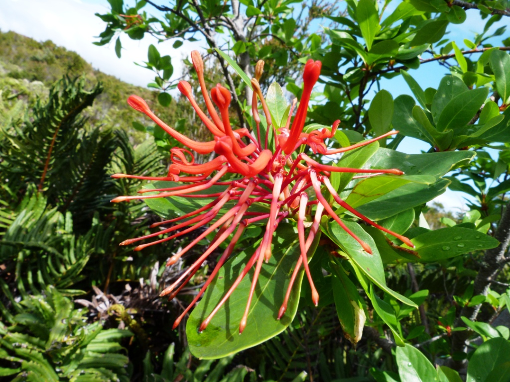 Am Tag zuvor hat es geregnet und der Pfad steht zu einem großen Teil unter Wasser; manchmal stehen wir knöcheltief im dicken Matsch und bei jedem Schritt geben die Trekkingschuhe ein schmatzendes Geräusch von sich. Winzige grün-braun schimmernde Kolibris fliegen vorbei und verharren flügelschlagend und Nektar trinkend vor den rot leuchtenden Blüten einer Pflanze, die selbst eher wie ein Tier ausschaut.