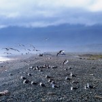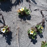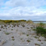 In der Nacht fällt Regen, aber am nächsten Morgen kommt die Sonne wieder durch und schon bald ist der Himmel klar. Beim Frühstück ziehen gemächlich einige dunkle Delphine mit hellem Bauch in zehn, fünfzehn Meter Abstand flussaufwärts an uns vorbei. Später, am Strand gleich um die Ecke, sehen wir sie wieder und beobachten sie beim Jagen nach Fischen. In den großen, mit Strandhafer bedeckten Dünen wachsen Tausende wilder Erdbeeren, die um diese Jahreszeit weiße Blüten tragen. Ich hüpfe wie Rumpelstilzchen umher, um keines dieser Pflänzchen zu zertreten. In ein paar Wochen wird aus jeder Blüte eine dieser herrlich geschmacksintensiven, süßen kleinen Früchte gereift sein, aber dann sind wir leider schon nicht mehr da.