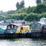 Als es entlang der Küste nicht mehr weiter geht nehmen wir wieder Kurs auf die PanAm und fahren zur Inselhauptstadt Castro, die berühmt für ihre bunten palafitos entlang der Wasserfront und ihre alte, lila-gelb angemalte Holzkirche ist. Die dünnwandigen Pfahlbauten sind zum Wasser hin auf Stelzen gebaut, so daß die Fischer bei Flut mit ihren Booten direkt unter ihre Häusern fahren konnten. Bei Ebbe fällt der Strand unter den Häusern trocken. Immer schon mehrheitlich das Zuhause der ärmeren Bevölkerung waren die palafitos eine lange Zeit dem Verfall preisgegeben, bevor ihr touristisches Potenzial erkannt wurde. Retro ist chic. Vorausschauende Unternehmer und trendbewußte Architekten haben inzwischen einige von ihnen zu kleinen Hotels und Restaurants umgebaut.