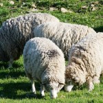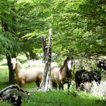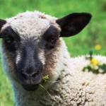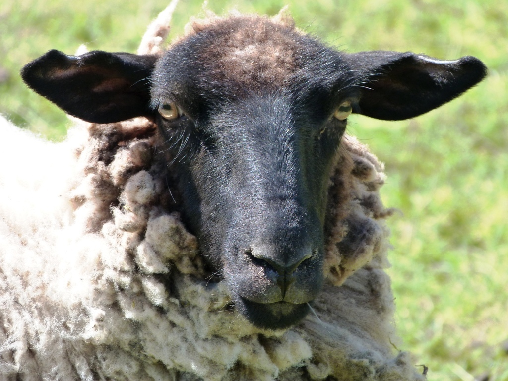 – Schafe, eben noch die schwarzen Köpfe schafsnasig und mit höchster Konzentration fressend im hohen Gras versenkt, galoppieren beim allerersten Geräusch des Mogs mit wippenden Lämmerschwänzen wie angestochen los, soweit weg von uns wie möglich, und bleiben erst stehen, wenn die Zunge aus dem Hals hängt. Eine erfolgreiche Fluchtstrategie, denn beim Fotografieren erwische ich von Weitem meist nur noch den wollenen Hintern.