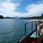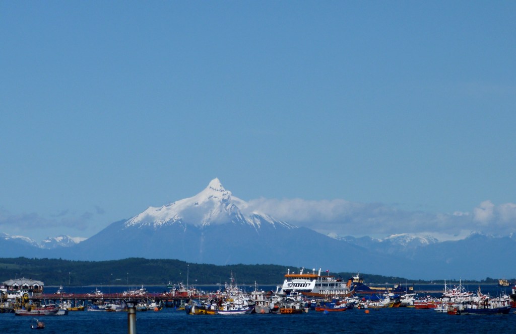 Den gesamten Fjord entlang fahren wir bis Caleta Puelche, wo wir in einer halben Stunde mit einer kleinen Fähre übersetzen, und entlang der Bucht von Reloncavi weiter nach Puerto Montt fahren, welches in einem weitem Bogen von zwei Kilometern Ausdehnung die Bucht umspannt.