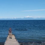 Zahlreiche Orte hier tragen die Endung –hue, was in der Sprache der Mapuche „Ort“ bedeutet. Llanquihue bedeutet „tiefer Ort“. De facto liegt der See 70 Meter über dem Meeresspiegel und seine größte Tiefe beträgt 350 Meter. Abends finden wir direkt an seinem Ufer versteckt hinter hohen Büschen einen schönen ruhigen Stellplatz.