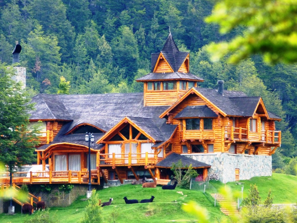 An der Strecke liegt kurz vor Futaleufú der der Lago Lonconao, wo dann durchaus auch mal eine solche Villa im Blockhausstil zu sehen ist, Llamas als Haustiere im Garten inklusive.