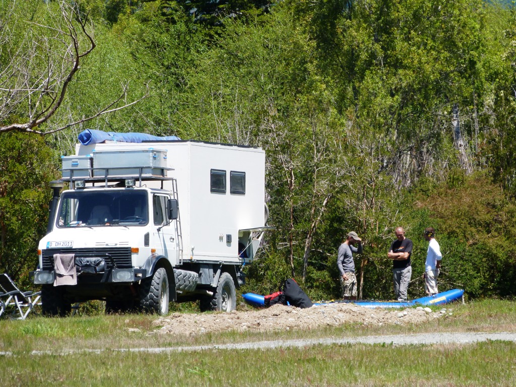 Julian und Markus wollen den Rio Figueroa gerne noch paddelnd bezwingen, also verbringen wir noch eine Nacht am bereits bekannten Wiesenstellplatz am Flussufer des Rio Palena und fahren am nächsten Morgen kurzerhand Richtung argentinische Grenze bis nach Lago Verde. Nach einer Nacht am jadegrünen See trennen sich unsere Wege; vielleicht sammeln wir die beiden sportlichen Rafter weiter im Süden ja noch einmal ein :-).