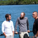 Wir wähnen uns schon als Adam und Eva im Paradies, als am nächsten Morgen kurz nach dem Frühstück hinter uns aus dem Nichts plötzlich Stimmen laut werden: „Do you speak English?“ Seit wann können Flüsse sprechen? Und dann: „Ohhhh, you speak German?!!!!!“ Vom Flussbett kommen Julian und Markus angestapft und setzen uns mit wenigen Worten ins Bild: Sie haben sich schlichtweg verpaddelt, wollten eigentlich mit ihrem kleinen Otter-Raftingboot viel weiter östlich in den Rio Rosselot abbiegen und haben den Flussarm um schlappe siebzehn Kilometer verpasst. Das hört sich erstmal wenig an, aber bei der starken Strömung des Rio Palena ist es unmöglich, die Strecke zurück zu paddeln. In der Einsamkeit gestrandet kann man hier auch nicht darauf hoffen, daß in absehbarer Zeit ein Auto vorkommt, das einen zum Wunschort befördern kann. Das Warten kann hier auch mal Tage dauern.