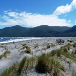 Am weitläufigen Sandstrand ist außer uns kein Mensch zu sehen, außer der Brandung des Pazifiks und vereinzelten Vogelrufen ist kein Laut zu hören. Hinter den gelben Ginsterbüschen zeichnen sich entfernt am Horizont die schneebedeckten Gipfel der Anden vor dem strahlend blauen Himmel scharf ab. Die Zeit perlt dahin. Keine Menschen, keine Autos, keine Züge. Kein Flugzeug, das den patagonischen Himmel zerschneidet. Kein Fernsehen, kein Radio, kein Telefon, kein Wi-Fi. Kein facebook, kein Whats App, kein Linked-in, keine Nachrichten. Keine Termine, keine Eile, keine Hektik, kein Stress. Einfach nur Stille und natürliche Schönheit. Man möchte in diesem Moment verweilen, ihn festhalten, einfach nur da sein. Da. Sein.