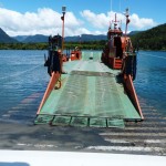 Markus und Julian sind flexibel, wir adoptieren sie kurzerhand für paar Tage, die Otter wird zum Drachen & Co aufs Dach geschnallt und zu Viert fahren wir weiter. Je näher wir dem Meer kommen desto ursprünglicher und unbewirtschafteter wird die Landschaft. Dann endet die Piste an einem kleinen Anleger aus Beton und wir überqueren auf einer winzigen Fähre den Rio Palena, bevor es auf der anderen Seite des hier breiten, aber gemächlich dahinfließenden Flusses weitergeht.