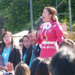Auch wenn Coyhaique das wirtschaftliche Zentrum der gesamten südlichen Carretera Austral ist, so vermittelt der Ort einen beschaulichen, eher dörflichen Eindruck. Es gibt einige bescheidene Geschäfte und Restaurants, ein Kino und eine schöne, mit großen Bäumen bestandene fünfeckige Plaza im Zentrum. Als wir samstags dort auf einer Bank sitzen versammeln sich plötzlich Hunderte Menschen im Halbkreis um eine Bühne, wo sich schon ein kleines Orchester in festlicher Kleidung zusammengefunden hat. Wir denken zunächst, es ist eine vorweihnachtliche Aufführung, vielleicht von einer Schule. Weit gefehlt: Eine Wanderpredigerin der Methodisten-Pfingstkirche in leuchtend pinkfarbenem und reich besticktem Gewand tritt auf. Mit schöner, alles durchdringender Stimme schmettert sie, von Chor und Orchester begleitet, gute zwei Stunden lang ihre Weisheiten in Form von Liedern und Predigten in die Runde. Die Show – eine Mischung aus blumigsten Verheißungen des Paradieses und blutrünstigsten Androhungen von Fegefeuer und Hölle untermalt mit melodischen lateinamerikanischen Rhythmen – stimmt; die Menge lauscht gebannt, klatscht, singt mit, jubelt ihr zu, macht Fotos und Filme mit dem Handy.