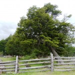 Wege oder Pisten zurück zur Carretera gibt es nur einen, und den sind wir schon gekommen. Wir haben wenig Lust, die Strecke zweifach zufahren, könnten alternativ eine schlechte Piste über Argentinien nehmen, aber die zweifachen Grenzformalitäten haben wir noch weniger Lust. Vielleicht gibt es ja doch irgendeinen Weg, eine Abkürzung. Selbst wenn die Piste schlecht ist, mit Unimoppel sollte es kein Problem sein. Wir entdecken tatsächlich eine kleine Piste, die Richtung Süden führt, aber dann kommt ein locker verschlossenes Tor mit einem Schild „Recinto Privado“ undsoweiterundsofort. Also war´s das, umdrehen. Dann lese ich das Schild mal richtig und ja, handelt sich um Privatbesitz, aber „Betreten erlaubt!“ Wir brechen weiter durchs Gebüsch, bis wir plötzlich feststellen, daß uns ein Pick-up folgt. Also doch falsch verstanden? Nein, alles ist okay. Ein junger Chilene stellt sich als Verwalter des Parks vor und klärt uns auf: Es handelt sich um ein privates Naturreservat, welches von Chilenen und Ausländern vor nicht allzu langer Zeit gegründet wurde. Während der Sommermonate Dezember bis März soll das Reservat für Besucher offen stehen und eine kleine touristische Infrastruktur wie im Parque Pumalin ist im Entstehen. Wir schwatzen noch ein bisschen über Dies und Das und was prompt folgt ist eine Einladung zum Lunch.
