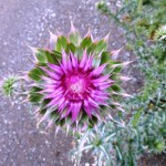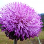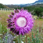 Diese Disteln am Rand der Straße sind gut 1,5 Meter hoch und tragen Blüten so groß wie eine Männerfaust: