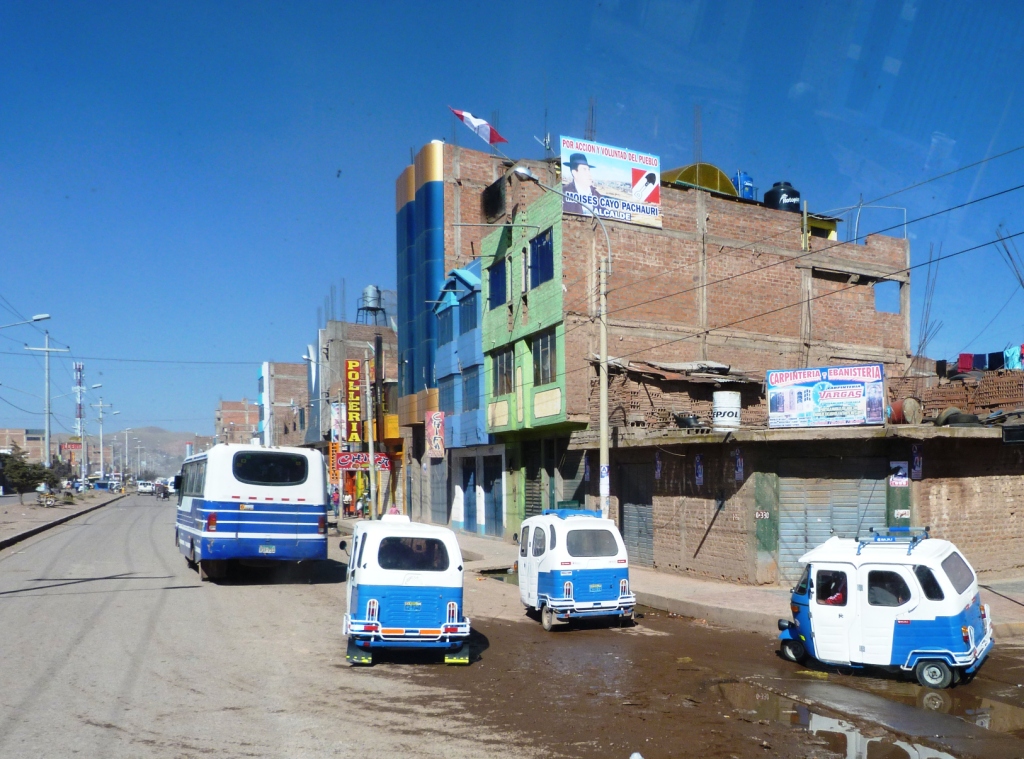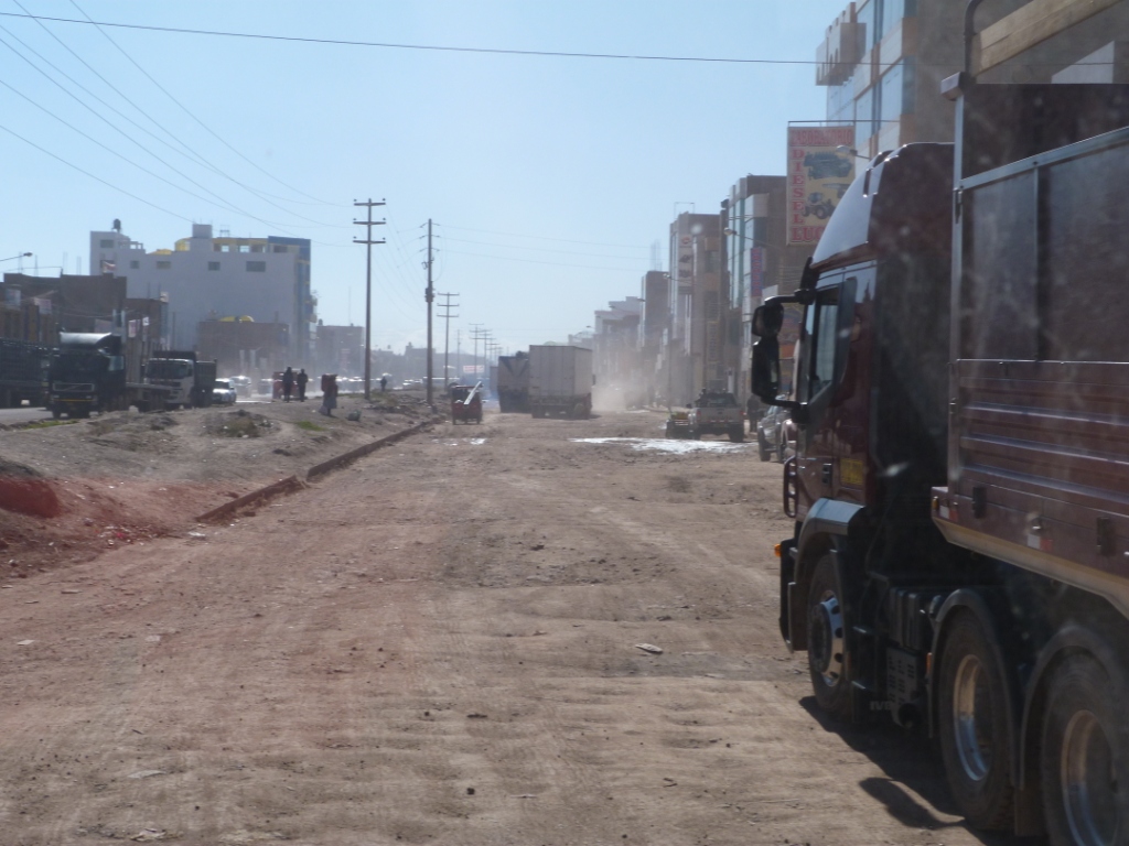 Über das recht große Islay/Matarani wird der gesamte Güterverkehr vom Pazifik zur brasilianischen Atlantikseite abgewickelt. Die Fracht der Schiffe wird hier auf LKW umgeladen und dann über die Titicacasee-Route nach Brasilien transportiert. Sind ja auch nur ein paar Kilometer, nur eben einmal quer rüber über die Anden. Daneben ist Islay/Matarani Freihandelszone und Hafen für … Bolivien. Das Land, das seit der Unabhängigkeit 1825 rund 200 gewaltsame Machtwechsel durchlebt hat und damit den einsamen Weltrekord hält, hatte sich neben seinen dauernden innenpolitischen Wirren auch mit all seinen Nachbarn angelegt und dabei den Kürzeren gezogen: Im Salpeterkrieg um 1880 mußte es die Region Antofagasta an Chile abtreten und verlor damit den Zugang zum Pazifik. Gute zehn Jahre später streitet es sich mit Brasilien, verliert und muß die Region um Acre abtreten. Knappe dreißig Jahre später verliert Bolivien im Chaco-Krieg das Chaco-Gebiet an Paraguay. Im Laufe der Zeit verlor Bolivien so rund 50% seines ursprünglichen Staatsgebietes. Zum Glück sind die Peruaner verträgliche Nachbarn und schlossen 1992 großzügig einen Vertrag über die bolivianische Nutzung der Pazifikhäfen Ilo und Islay.