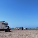 Mangels irgendeiner Beschilderung verfahren wir uns hoffnungslos im Stadtverkehr von Mollendo und fragen zwei Polizisten in einem Streifenwagen nach dem Weg Richtung Mejia. Robert der Niro in jungen Jahren und schick bemützt sagt daraufhin, wir sollen uns keine Sorgen machen, sondern ihm einfach folgen. Es sei ihm eine Ehre, uns den Weg zu zeigen. Galanter gehts nicht. Umgehend schaltet er sein Rotlicht auf dem Dach an, ein zweiter Wagen setzt sich hinter uns und nach wenigen Kilometern in Begleitung sind wir auf die richtige Spur gesetzt. Die Fahrt über die Costanera führt uns entlang der Laguna de Mejia, einem unter Naturschutz stehenden Feuchtgebiet mit Küstenlagunen, in dem zahlreiche Vogelarten dauerhaft zuhause sind und auch viele Zugvögel überwintern.