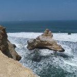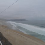 Für diese Teilstrecke der PanAm sollte man schwindelfrei und kein Hasenherz sein. Die kalten Wellen des Pazifik türmen sich meterhoch und brechen mit gewaltigem Donnern auf den Sandstrand direkt unter uns. Viele Pelikane und Raubvögel sind zu sehen, auch einen gestrandeten Wal entdecken wir am Strand. Die PanAm schraubt sich viele Hundert Meter hoch, eng an die Bergflanke geschmiegt, und wenn in einer Haarnadelkurve plötzlich ein schwer beladener Truck auf der eigenen Fahrbahn entgegenkommt, weil er mit zu hoher Geschwindigkeit aus der Spur getragen wurde oder weil er den Platz benötigt, um seine Fracht um einen Felsüberhang zu befördern, ja dann gibt’s auch mal kurzzeitig einen deutlich beschleunigten Herzschlag und Stress im Cockpit, denn einen knappen halben Meter weiter rechts geht es senkrecht ganz schnell nach unten. Es gibt’s nichts, was den Fall aufhalten könnte. Die Überlebenschance ist gleich Null: Wer sich bei dem Sturz noch nicht das Genick gebrochen hat, ertrinkt unten im Pazifik. Es ist erschreckend, wie viele der kleinen mit filigranen Kreuzen und Plastikblumen geschmückten Gedenkhäuschen die PanAm auf diesem Streckenabschnitt säumen. Das Foto habe ich vom Beifahrersitz aus während der Fahrt gemacht…