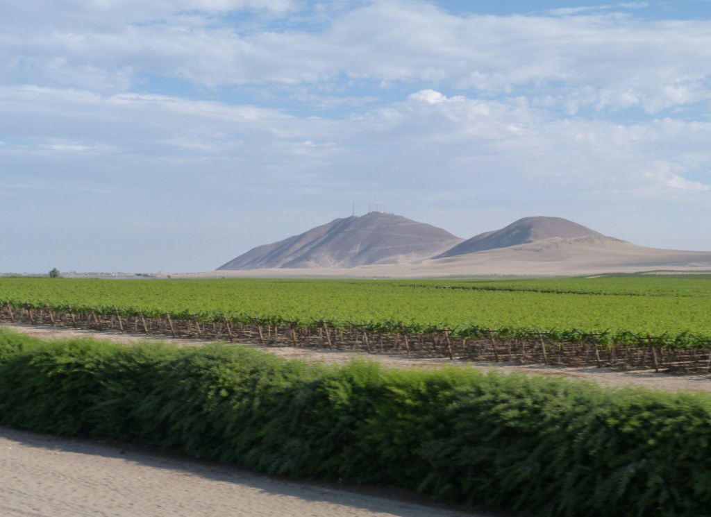 Zurück auf der Panamericana geht es durch die trockene Küstenwüste nach Ica, bekannt für seine Weinkellereien, Dattelpalmen und den Anbau von Mangos und grünem Spargel, der zum größten Teil exportiert wird, da die traditionelle peruanische Küche ihn nicht kennt.