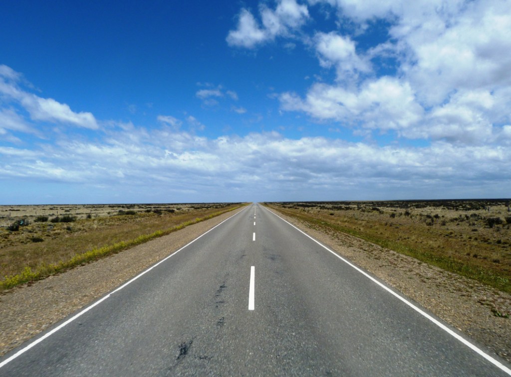 Die staubtrockene Pampa mit ihrem ewig gelben Büschelgras, den Schafen und Guanacos setzt sich auch auf Feuerland fort und die „Straße zum Ende der Welt“ fühlt sich im chilenischen Teil genauso an, wie man sich eine „Straße zum Ende der Welt“ vorstellt: als eine von abgrundtiefen Schlaglöchern übersäte schlechte Piste. Trotz Luftablassens ist die Fahrt streckenweise eine Tortur und wir kommen nur langsam voran. In San Sebastian wechseln wir dann wieder von Chile nach Argentinien; die Genzübergänge liegen durch zwanzig Kilometer Niemandsland voneinander getrennt. Als wir am argentinischen Posten aus dem Wagen steigen huscht neben uns ein kleines Gürteltier durchs Gras. Die PanAm ist ab hier wieder geteert und wir steuern Rio Grande, eine windzerzauste Hafenstadt an der Atlantikküste an, um Lebensmittel und Diesel zu bunkern. Am großen Kreisverkehr vor der Stadt staunen wir nicht schlecht:
