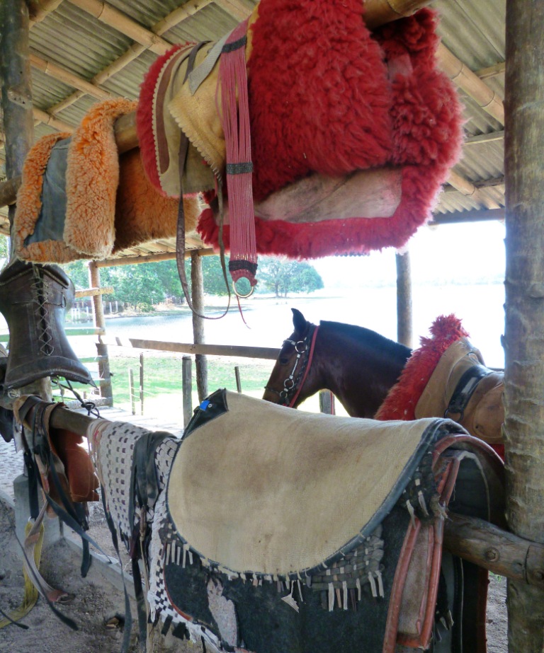 Am nächsten Morgen bin ich schon vor sechs Uhr unterwegs, während Hugo noch im Koma liegt und sich vom Capivara-Trauma des Vorabends erholt. Der Himmel über der Fazenda ist malerisch gefärbt; ein Hauch von Nebel überzieht die Landschaft um diese Zeit noch mit einem zarten Schleier, den die Sonne in kurzer Zeit weggeschmolzen haben wird. Außer den Vögeln, die wie immer um diese Uhrzeit einen Mordsradau machen, ist noch alles still. Einer der Peones sattelt mit ruhigen Bewegungen und leise eine Melodie summend sein noch dösendes Pferd, um seine morgentliche Runde zu machen, zwei Stunden später wird er zurück sein.