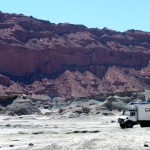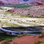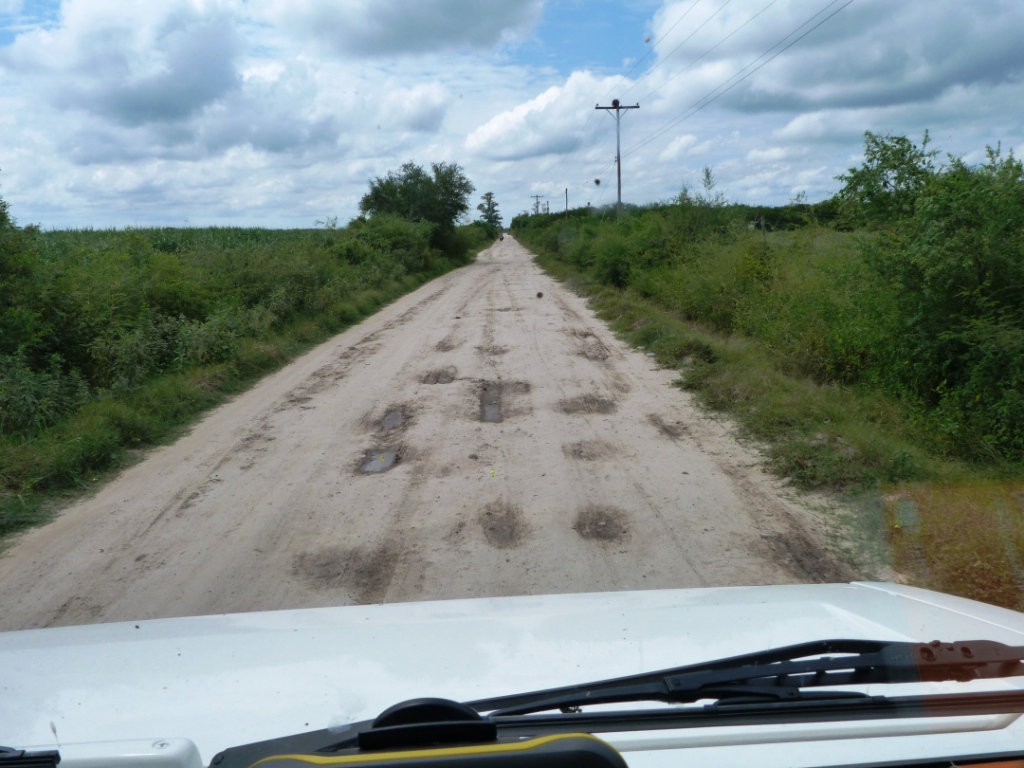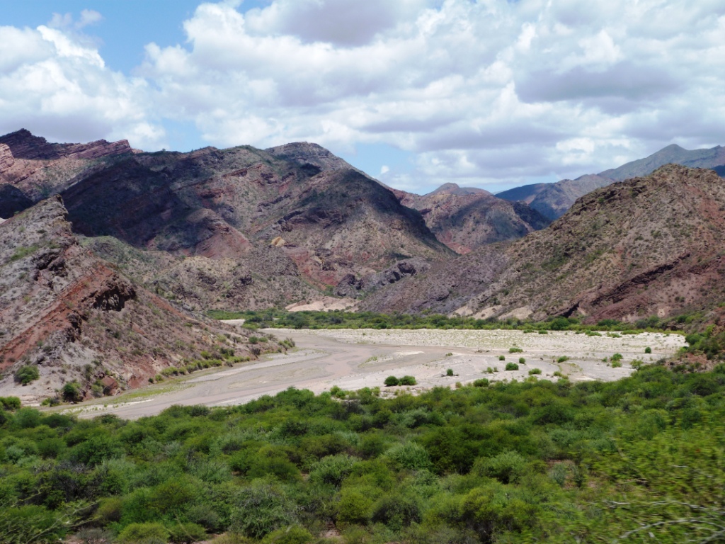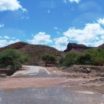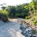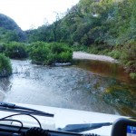 Vor Anbruch der Dämmerung fahren wir eine enge Schotterpiste die Berge hinunter zum Rio Pinto, wo wir die Nacht verbringen wollen. Durch die Regenfälle der letzten Tage sind alle Bäche gut mit Wasser gefüllt und so liegen auf der kurzen Strecke ins Tal mehr als zehn holprige Wasserdurchfahrten.