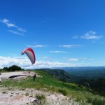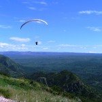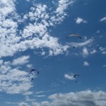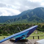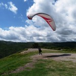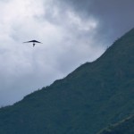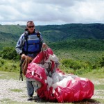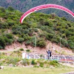 Fünfzehn Kilometer außerhalb von La Cumbre liegt der Start- und Landeplatz für Gleitschirmflieger, nur 350 Meter höher als die Umgebung, aber der Ausblick ist gigantisch. Weit kann der Blick in die Ferne schweifen, durch das grüne Tal windet sich der Rio Pinto, vor unseren Augen kreisen zwei Kondore. Hugo kann einige schöne Flüge genießen; einmal kreist er in einem Abstand von nur fünf Metern mit einem Kondor in einem Thermikbart.